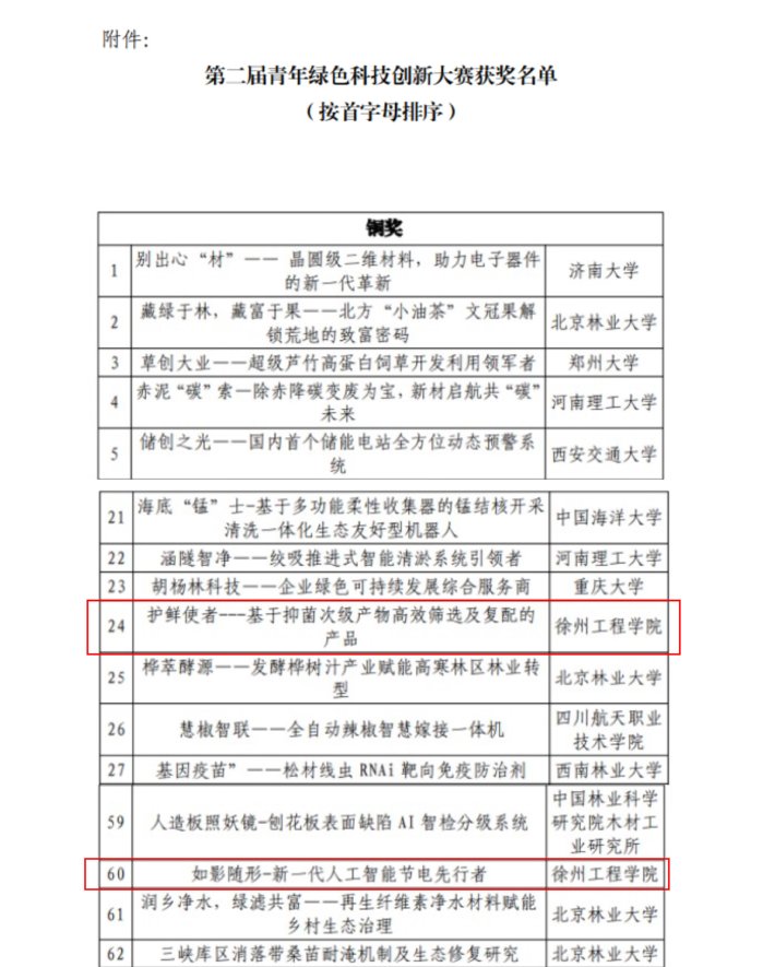 另外,在北京举办的第二届青年绿色科技创新大赛也传来喜讯,我校食品与生物工程学院的参赛项目《护鲜使者——基于抑菌次级产物高效筛选及复配的产品》、圣彼得堡联合工程学院的参赛项目《如影随形——新一代人工智能节电先行者》在全国总决赛中分获铜奖,这也是我校首次参加该项赛事。