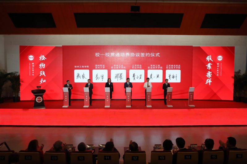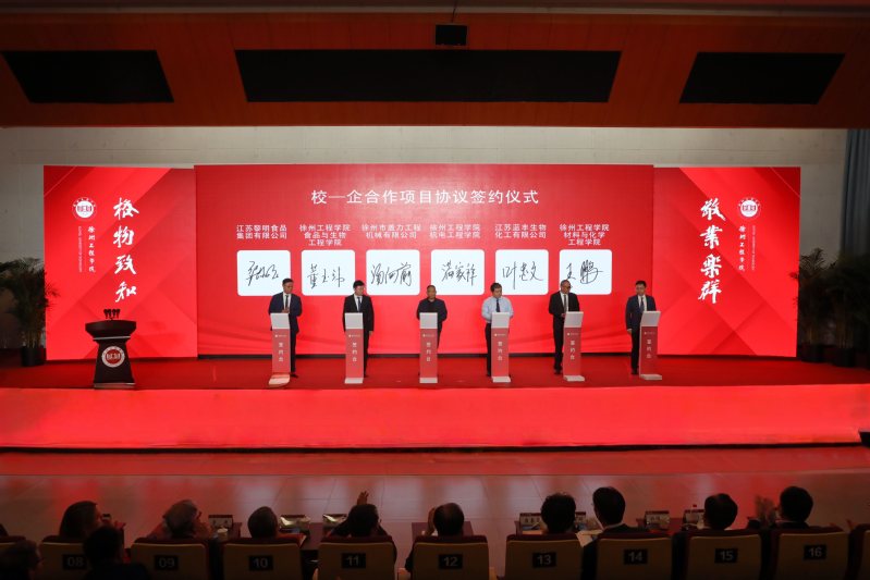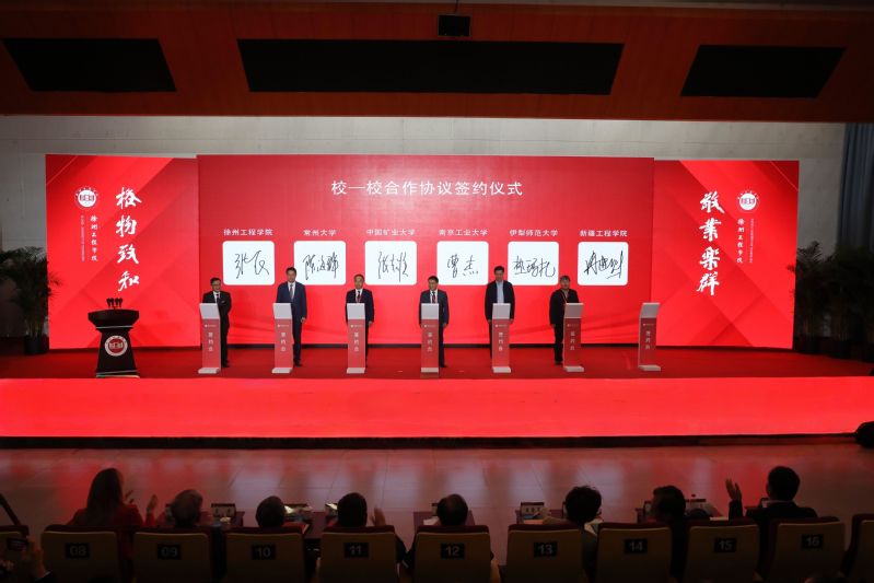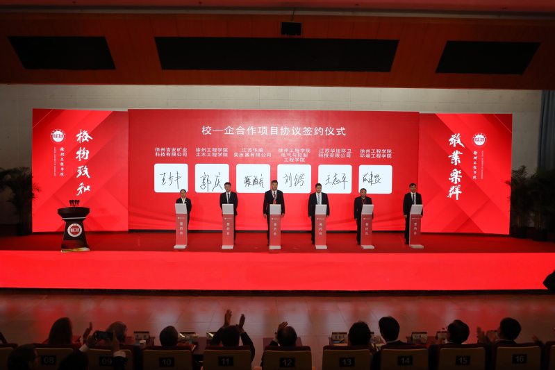 大会现场举行合作签约仪式。学校分别与徐州市工业和信息化局、徐州广播电视传媒集团、徐州市住房和城乡建设局、邳州市人民政府、鼓楼区人民政府、徐州高新技术产业开发区签订校地合作协议,与常州大学、中国矿业大学、南京工业大学、伊犁师范大学、新疆工程学院签订校校合作协议,与扬州职业技术大学、徐州工业职业技术学院、江苏财会职业学院、常州工程职业技术学院、江苏食品药品职业技术学院签订校校合作贯通式培养协议,与江苏黎明控股集团有限公司、徐州市盖力工程机械有限公司、江苏蓝丰生物化工股份有限公司、徐州吉安矿业科技有限公司、江苏华瑜变压器有限公司、江苏华旭环卫科技有限公司签订校企合作项目协议。协议的签订,既是对学校前期校地、校校、校企深度合作的延续,更是资源与智慧的深度融合新起点,为学校发展注入了新动能,为区域产业高质量发展提供了智力支撑。