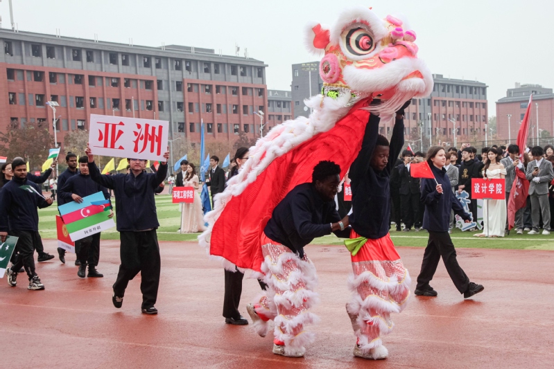 伴随着激昂的运动员进行曲,校旗方阵、会徽方阵、彩旗方阵、花环方阵、气球方阵以及各学院方阵、裁判员方阵精神抖擞,喊着嘹亮的口号,依次通过主席台,步入运动场。各学院方阵带来的创意表演别具匠心,巧妙融合了体育元素与专业特色,充分展现了我校师生健康向上、团结进取的精神风貌。