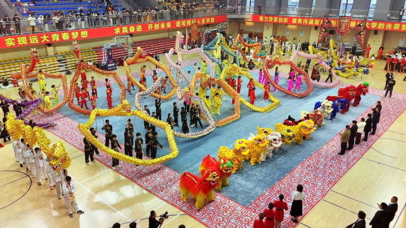 鼓点震彻校园,龙狮腾跃赛场!当千年汉风邂逅青春校园,11月15日,江苏省龙狮精英赛(徐州站)在我校东校区体育馆开幕。徐州市体育局四级调研员李化龙、徐州市舞龙舞狮运动协会终身名誉顾问李平、徐州市体育总会秘书长武高剑、徐州市舞龙舞狮运动协会会长史存平,我校体育学院负责同志等领导和嘉宾出席开幕式。