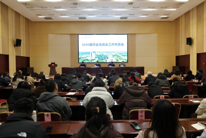 12月4日上午,我校召开2026届毕业生就业工作会议。校党委书记刘洋出席会议,副校长王逢博主持会议。学校毕业生就业工作领导小组成员部门主要负责人,各二级学院书记、院长、副书记和全体辅导员参会。