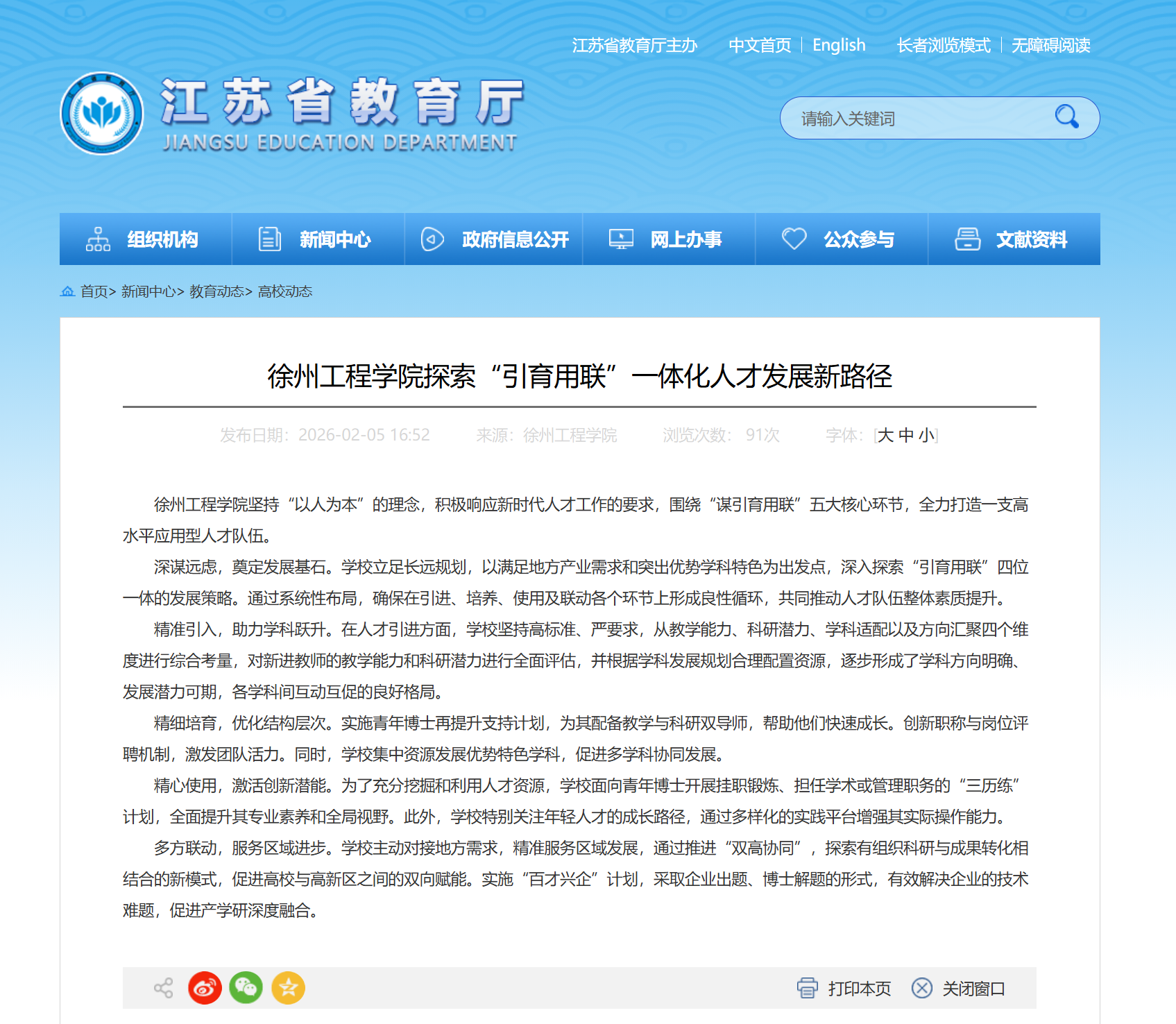 2月5日,江苏省教育厅网站对我校人才工作进行了报道,原文如下: