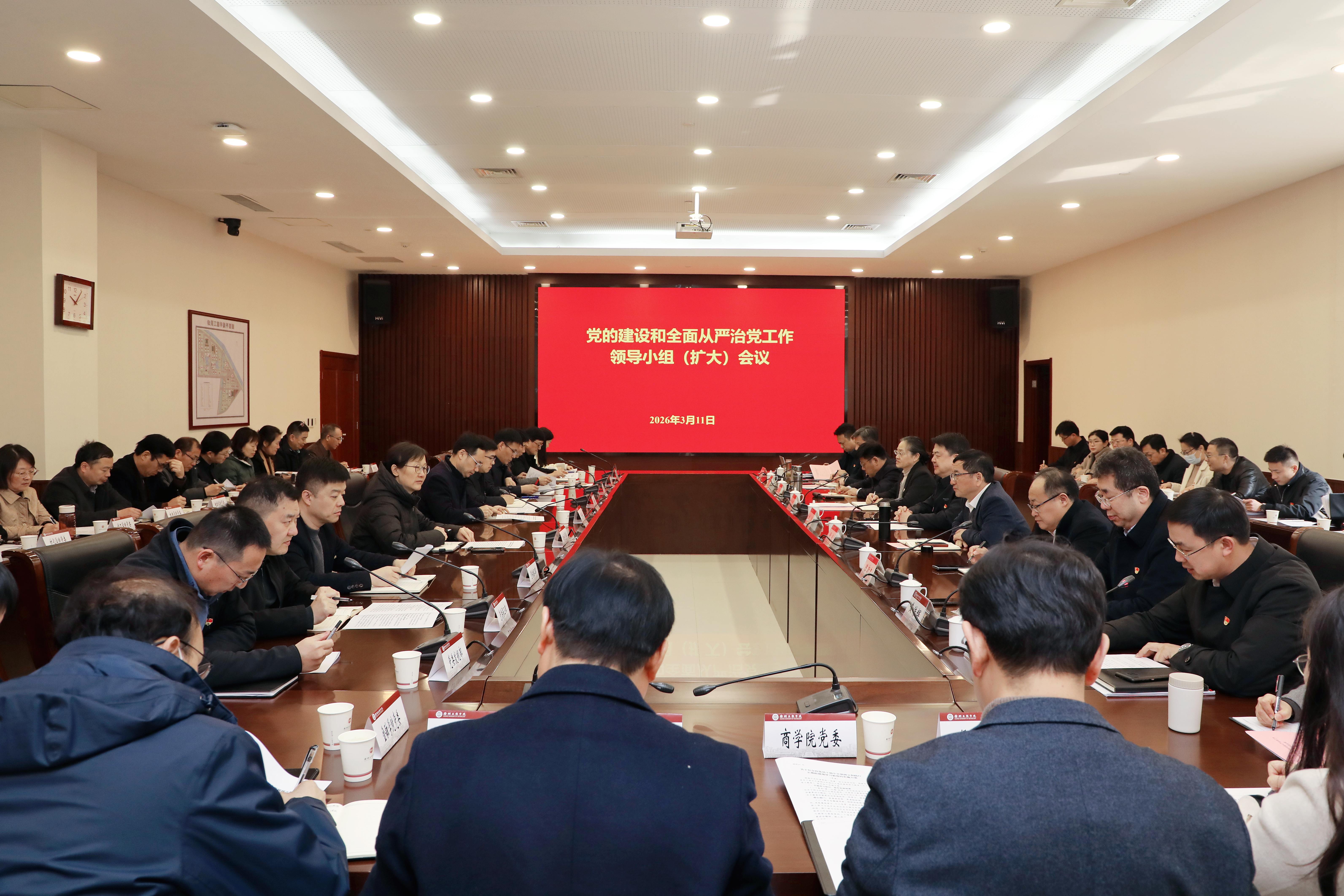 3月11日上午,我校召开党的建设和全面从严治党工作领导小组(扩大)会议,深入学习贯彻习近平总书记关于树立和践行正确政绩观的重要论述,贯彻落实中央党的建设工作领导小组及省委部署要求,正式启动在全校党员干部中开展树立和践行正确政绩观学习教育。校党委书记刘洋出席会议并讲话。会上传达学习了中央、省委党的建设工作领导小组相关会议精神。全体在徐校领导、党委常委、党委各部门主要负责人、各二级党组织书记参加会议。校党委常委、纪委书记万传鹏主持会议。