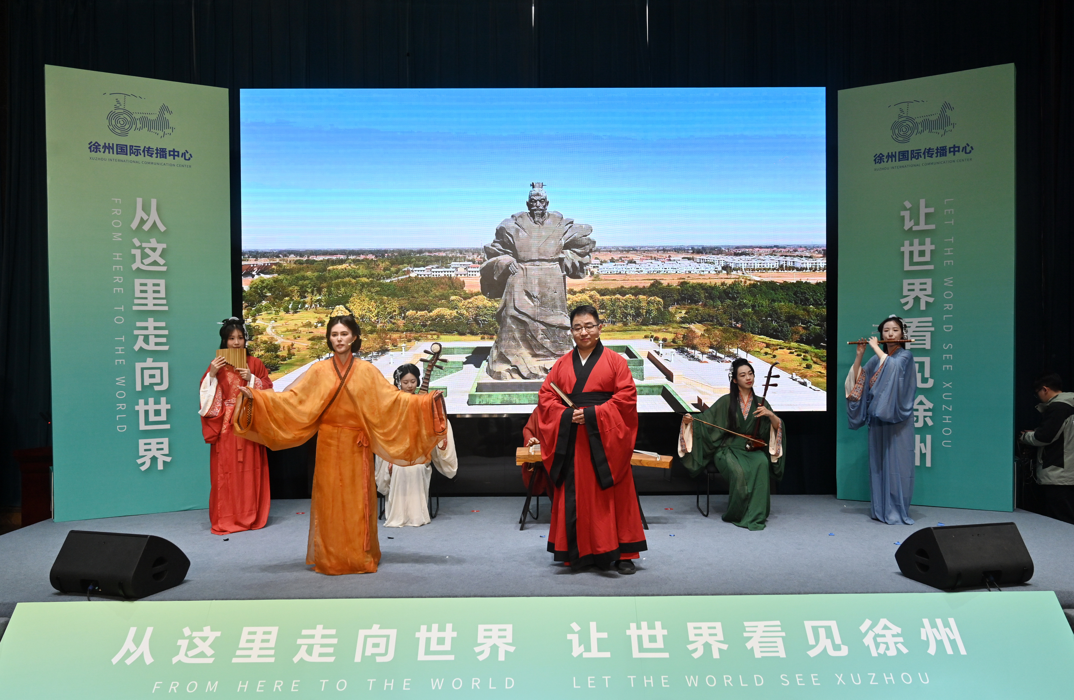 活动现场,发布了“汉风徐来”“智造徐州”“幸福徐州”“生态徐州”四大品牌项目,从文化、产业、生活、生态四个维度,全方位、多角度向世界展示一个立体、真实、生动的徐州。我校信息工程学院教师、徐州市两汉文化研究会会员郝心耀参与“汉风徐来”项目发布。他身着汉服,伴着丝竹雅韵,深情讲述一座城的千年文脉与时代新生,展示徐州深厚的文化底蕴与独特魅力,开启“汉风徐来”的文化传播之旅。我校外籍教师哈夫聂尔·雅娜与睢宁儿童画小画家们一同登台,推介“生态徐州”项目,展现徐州的生态之美。哈夫聂尔·雅娜说:“非常高兴成为‘海外传播官’,我将用自己的专业知识和亲身经历,向世界传递徐州的进步与温度,让更多人了解这座城市。”