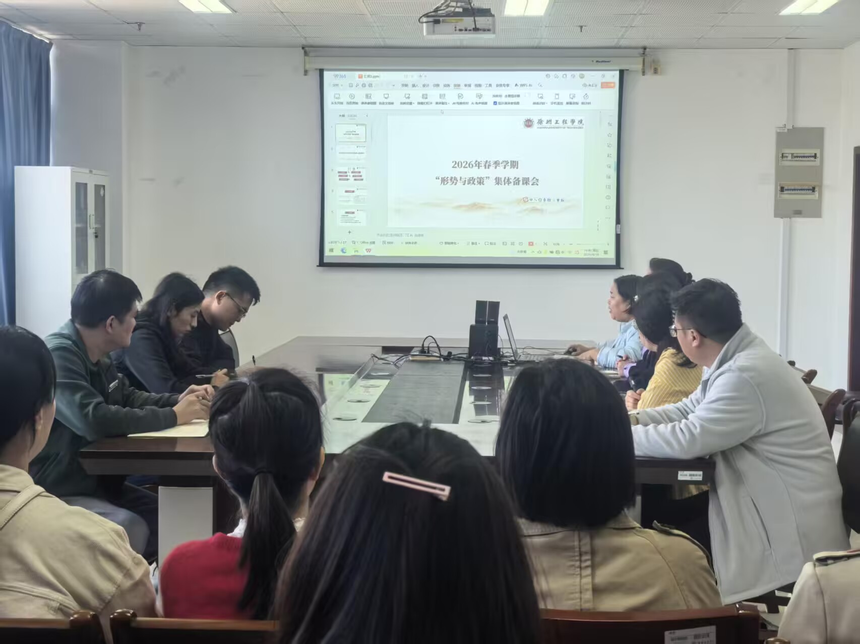 备课会上,与会人员共同学习了2026年上半年高校“形势与政策”课教学要点相关内容,围绕教学思路、逻辑结构、教学重难点、教学方式方法等进行了交流讨论。