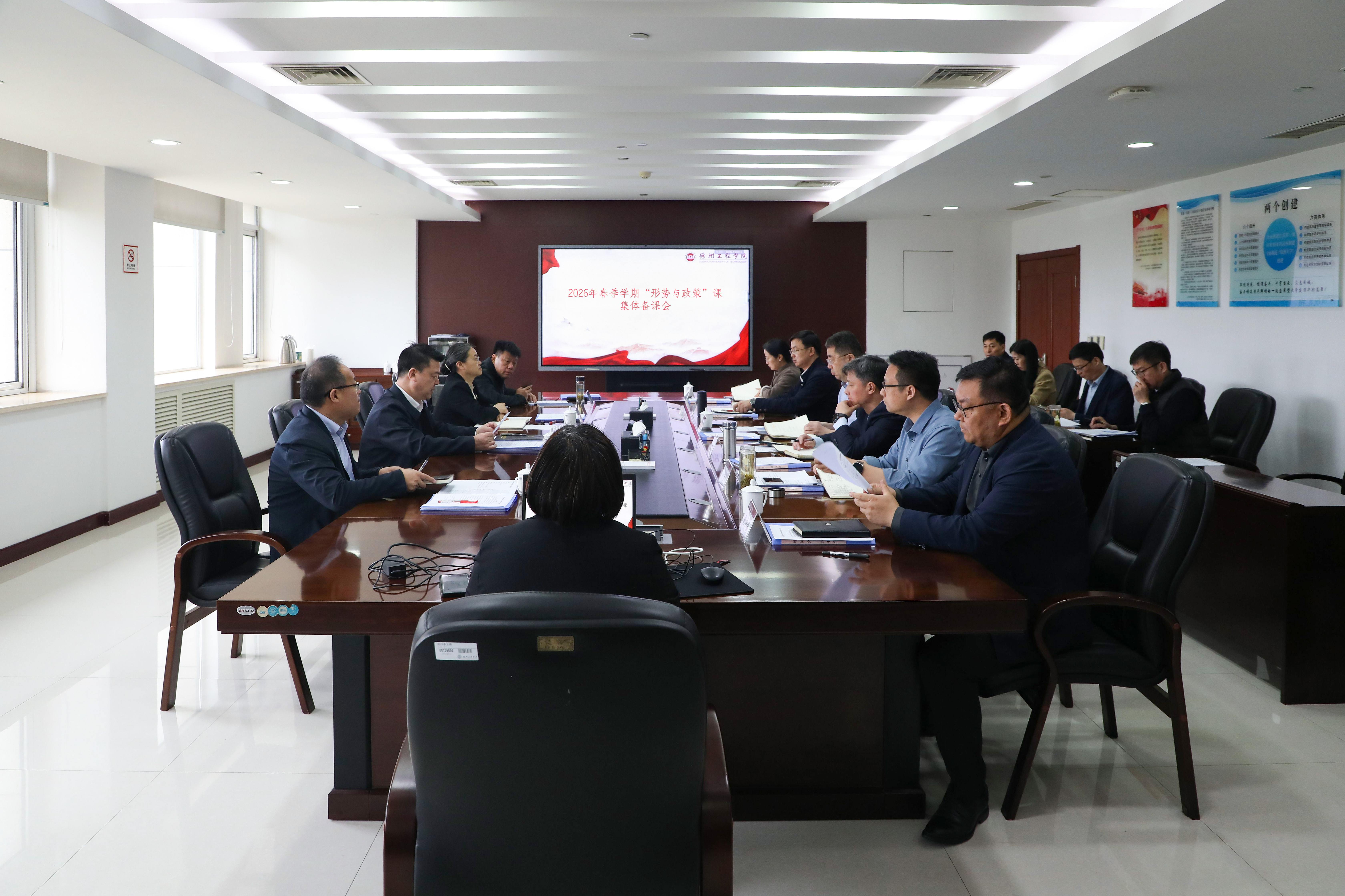 为深入学习贯彻习近平总书记对学校思政课建设重要指示精神,切实提升思政课教学质量和育人实效,近期,学校开展多场春季学期“形势与政策”课集体备课会与研讨活动。学校领导班子、马克思主义学院任课教师、“形势与政策”课教师代表分批参加会议,开展教学研讨。
