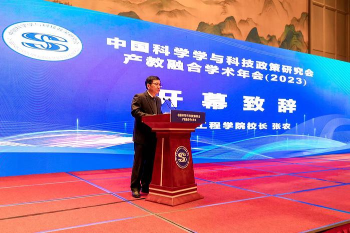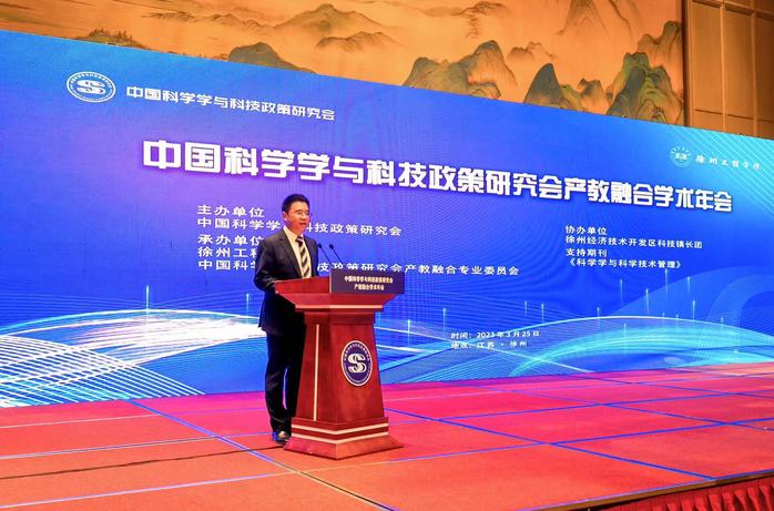 3月25日—26日,中国科学学与科技政策研究会产教融合学术年会在江苏徐州召开。本次大会由中国科学学与科技政策研究会主办,我校和中国科学学与科技政策研究会产教融合专业委员会承办。会议以“产教融合与区域创新发展”为主题,旨在加强对话与合作,共谱产教融合、区域创新发展新篇章。中国科学学与科技政策研究会名誉理事长方新、理事长穆荣平、监事长李廉水,我校校长张农、副校长曹杰出席会议,来自高校、科研院所、产业界等200余名专家学者参加会议。曹杰主持开幕式。