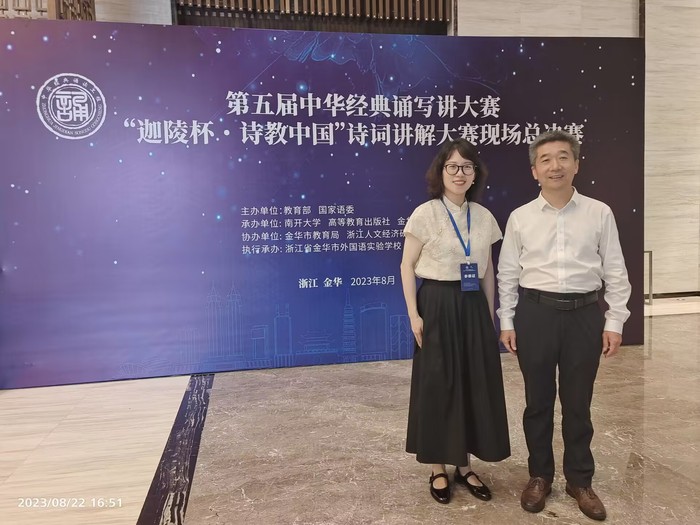 第五届中华经典诵写讲大赛“诗教中国”诗词讲解大赛于2023年3月正式启动,赛事面向全国在校大学生、留学生及大中小学校在职教师。经过省赛、全国半决赛等层层选拔,人文学院张敏老师入围全国总决赛。决赛中,张敏老师凭借对杜甫《登岳阳楼》一诗的精彩讲解,获得专家评审的充分肯定。
