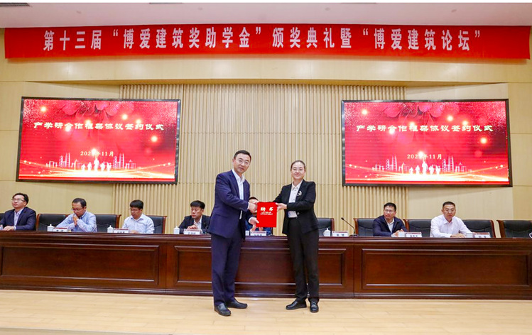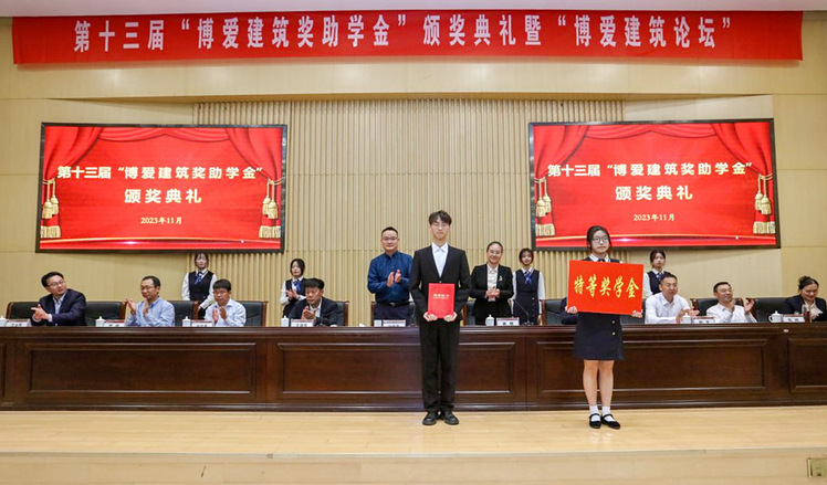 姜慧副校长在致辞中代表学校向与会嘉宾表示欢迎和感谢,并对获奖同学表示诚挚的祝贺。她指出,“博爱建筑奖助学金”至今已举办十二届,旨在奖励我校建筑专业领域品学兼优的学生。她希望获奖学生要坚定理想信念,厚植爱国情怀;要加强品德修养,赓续奋斗精神;要增长见识才干,增强综合素质。她勉励同学们在学习理论知识之余,一定要注重实践能力与创造性思维的锻炼,弘扬“大国工匠”精神,让自己成长为跨学科复合型应用技术人才,在国家的土木事业领域有所作为。