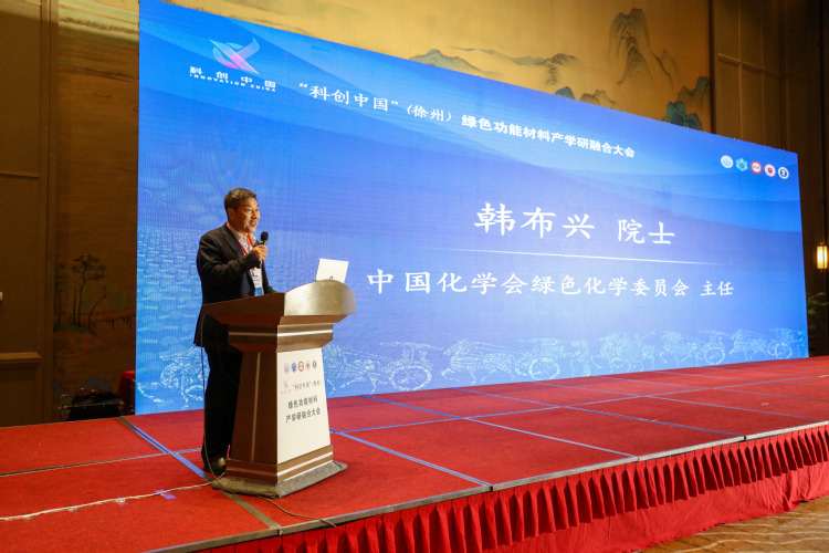 由徐州市委人才办、徐州市科学技术协会主办,徐州工程学院等单位共同承办的“科创中国”(徐州)绿色功能材料产学研融合大会于近日在徐州成功举办。中国科学院院士韩布兴、卜显和等10余位知名专家学者,我校校长张农、副校长谭文轶以及30余家企业及行业专家、高校师生等200余人参加了大会。
