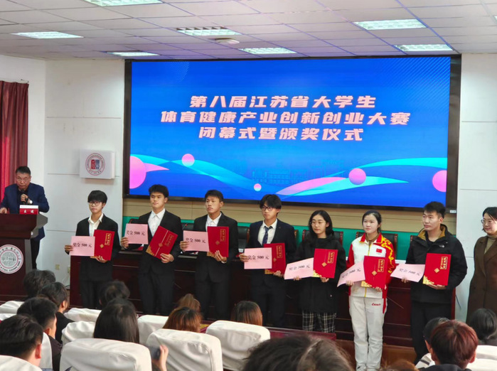 近日,由江苏省大学生体育健康产业创新创业联盟、江苏省高校体育教学指导委员会主办的第八届江苏省大学生体育健康产业创新创业大赛在苏州大学举办。本次大赛共有13所院校参加,提交了28个项目。我校体育学院代表队在刘涛老师的指导下,斩获了两个奖项。其中“同心同载全民排舞公益行”荣获本科组二等奖,“跃间之行——走进体育非遗交相辉映的沉浸式营地”获得了本科组三等奖。