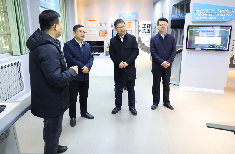 钟卫华一行实地调研了逸夫图书馆、淮海地区非物质文化遗产研究中心、土木工程学院建筑结构实验室、抗震救灾科普基地、机电工程学院产教融合实训基地、学生宿舍,与师生亲切交流,详细了解我校专业和文化建设、人才培养、社会服务等方面情况。