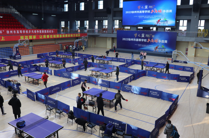 12月23日,由徐州市体育局、徐州工程学院以及徐州广电传媒集团联合主办的2023徐州市高等学校乒乓球争霸赛在我校体育馆举办,全市17支高校代表队共计85名运动员参赛。校党委书记刘洋出席开幕式并宣布比赛开幕。
