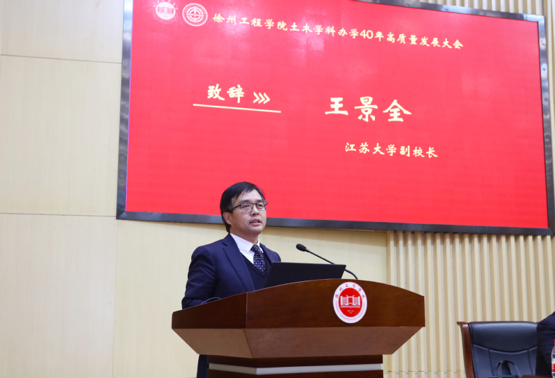 王景全副校长代表兄弟高校致辞,对土木学科办学40年表示祝贺,他回顾了与我校土木学科的渊源和良好的合作历程,希望徐州工程学院土木学科紧抓机遇,拼搏努力,在未来的发展中不断创新,传承文化,成就辉煌。江苏大学愿与徐州工程学院加强合作,研学并进、共促发展,推动两校土木学科迈上新台阶。
