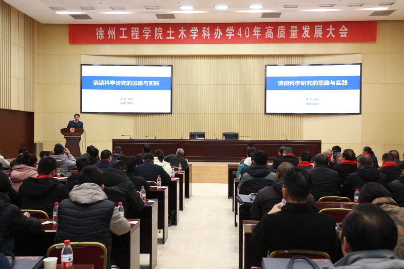黄卫院士向我校土木学科办学40年表示热烈祝贺。他指出,徐州工程学院土木学科坚持主动融入国家战略和区域经济社会发展大局,培养造就了众多行业精英,取得了一批批重要的科技和创新成果,为土木学科等相关学科的高质量发展做出了重要贡献。诚挚期待土木学科立足新时代,以高水平的人才培养和科技创新成果,为建筑行业高质量发展注入澎湃动能;衷心祝愿徐州工程学院早日建成特色鲜明的一流应用型大学,为推进中国式现代化作出新的更大贡献。