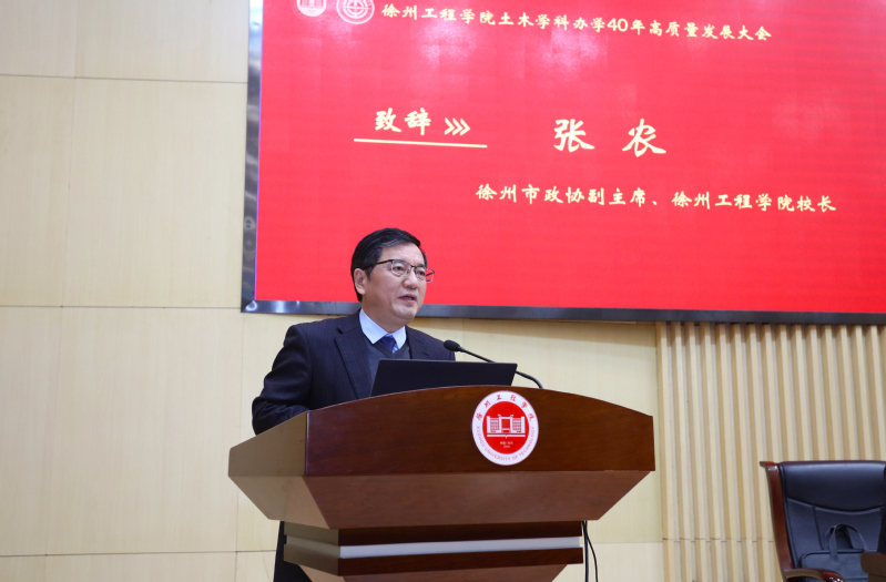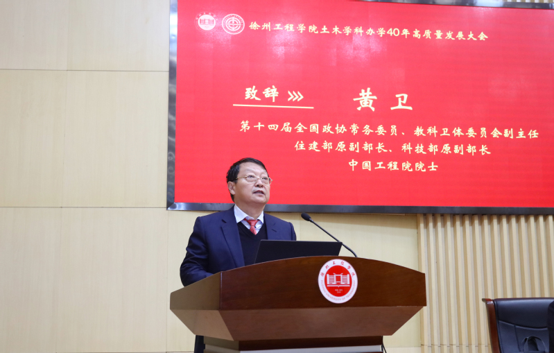 12月28日下午,徐州工程学院土木学科办学40年高质量发展大会在中心校区行政楼报告厅举行。第十四届全国政协常务委员、教科卫体委员会副主任、住建部原副部长、科技部原副部长、中国工程院院士黄卫,江苏大学副校长王景全,徐州市副市长林斌、徐州市住房和城乡建设局副局长方成伟,校党委书记刘洋、校长张农,副校长姜慧、谭文轶出席大会。参加大会的还有校机关党政部门,兄弟学院负责人,土木工程学院现任和历任领导班子成员、校友代表,各界嘉宾以及全院教职工、学生代表。大会由副校长谭文轶主持。