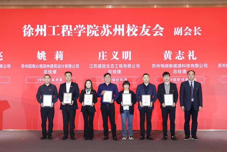 大会宣读了徐州工程学院苏州校友会成立批复,表决通过《徐州工程学院苏州校友会章程》和第一届理事会建议名单。刘洋书记向校友孙建东颁发了会长证书,双方共同为苏州校友会揭牌;李苏北副书记向校友颁发了副会长证书;教师代表分别向校友颁发了秘书长、副秘书长、理事等证书。