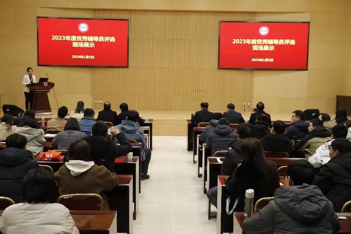辅导员培训结束后,会议进行了2023年度优秀辅导员评选现场展示。16位辅导员从多个角度展示了亦师亦友,潜心育人的工作事迹,用自己的青春陪伴学生成长。
