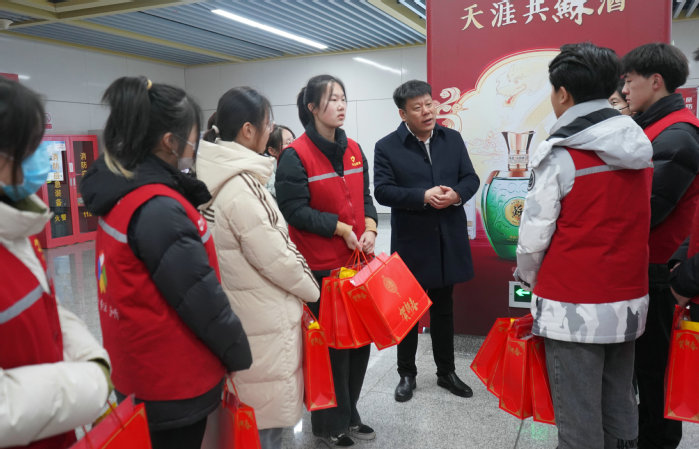 2月9日上午,王逢博副校长率校团委负责人前往地铁站慰问忙碌在一线的志愿者,为他们送去节日的问候和祝福。校领导与春运志愿者亲切交流,询问了安全、交通、用餐等情况,了解了志愿者的工作安排和服务内容,肯定了志愿者不惧严寒、无私奉献的工作精神。王逢博副校长叮嘱大家注意工作安全,做好防寒保暖。他希望我校志愿者在志愿服务中受锻炼、长才干,在服务社会中提升自我,引导大学生积极投身家乡发展,用青春行动讲好志愿故事、徐工院故事。