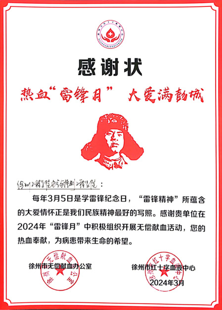 为弘扬雷锋精神、传递爱心,近日,我校电气与控制工程学院联合徐州市红十字血液中心举办无偿献血活动。