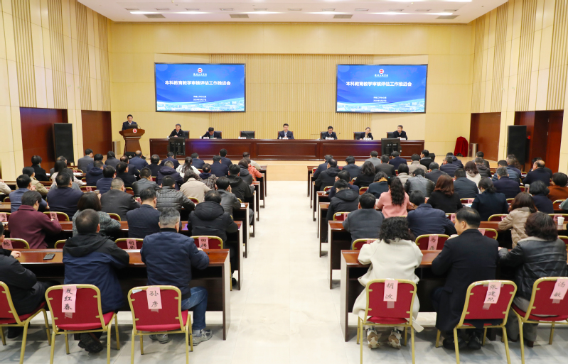 为进一步明确新一轮审核评估工作的要求和任务,推进各项评建工作有效落实,3月27日下午,我校在行政楼报告厅召开本科教育教学审核评估工作推进会。全体校领导出席会议。各部门主要负责人、各学院领导班子成员,评建办成员单位科级及以上干部,教师代表参加会议。副校长曹杰主持会议。