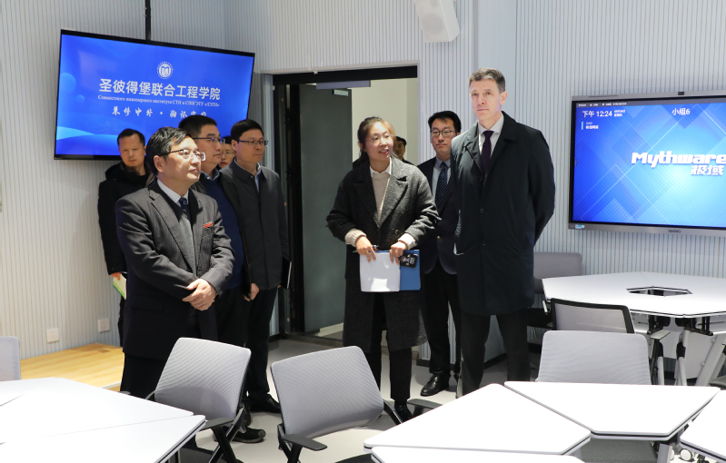 会后,张农校长陪同总领事一行参观我校圣彼得堡联合工程学院、机电工程学院、食品与生物工程学院、管理工程学院实践实训中心。