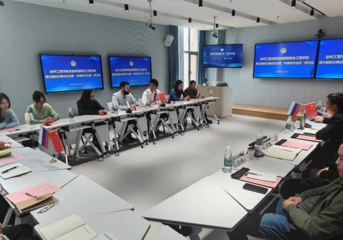 4月10日下午,徐州工程学院圣彼得堡联合工程学院俄方副院长聘任仪式暨“中俄学术交流”研讨会在敬中楼301智慧教室举行,副校长谭文轶,俄方教师代表及相关学院代表参加。会议由直属党支部书记吴涛主持。