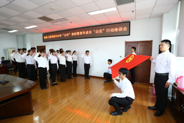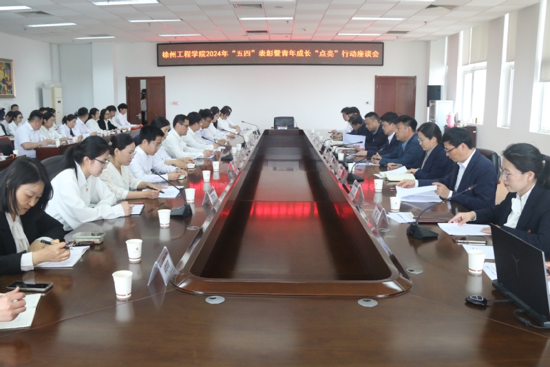 4月28日下午,我校在图书馆会议室举办徐州工程学院2024年“五四”表彰暨青年成长“点亮”行动座谈会。校党委书记刘洋出席会议并为“徐工院青年之家•团团会客厅”揭牌。副校长王逢博宣读了《关于表彰徐州工程学院2024年度共青团先进集体和先进个人的决定》。校团委副书记郝景亚主持会议。