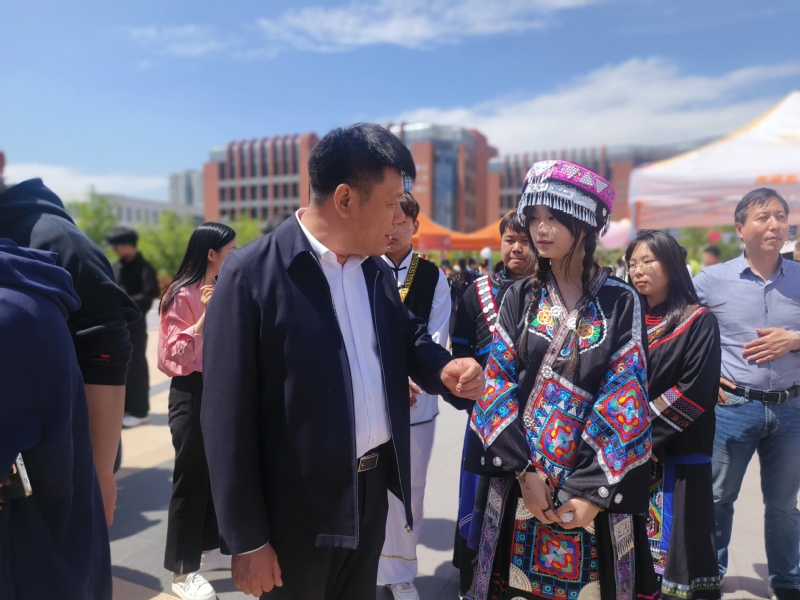 此次游园会系我校“铸牢中华民族共同体意识”文化育人主题活动之一。整场游园会分为视听区、体验区和活动区三个区域。在视听区,贵州、广西等多地管工学院学生家长与现场同学进行连线,线上互动,介绍本民族传统技艺、民俗文化,推介家乡特产好物。在体验区,参与者体验漆扇、扎染、香包、剪纸、泥塑等技艺,一把把独一无二的漆扇、一张张活灵活现的剪纸,一份份迎风飞扬的扎染手帕,彰显着国风美感;身着布依族、苗族、彝族、土家族、壮族、回族服饰的同学向参观者介绍本民族传统服饰的穿戴,推荐家乡特色美食。活动区域,竹竿舞、投壶、踩高跷、走板鞋、绣球背篓等传统民俗游戏丰富有趣,吸引师生驻足参与。校领导曹杰、王逢博走进游园会活动现场,与同学们共同制作扎染、漆扇,品尝三炮台、擂茶、米豆腐、鲜花饼等地方美食,和贵州、新疆、宁夏等地同学畅谈家乡生活,关心他们在学校的成长学习。