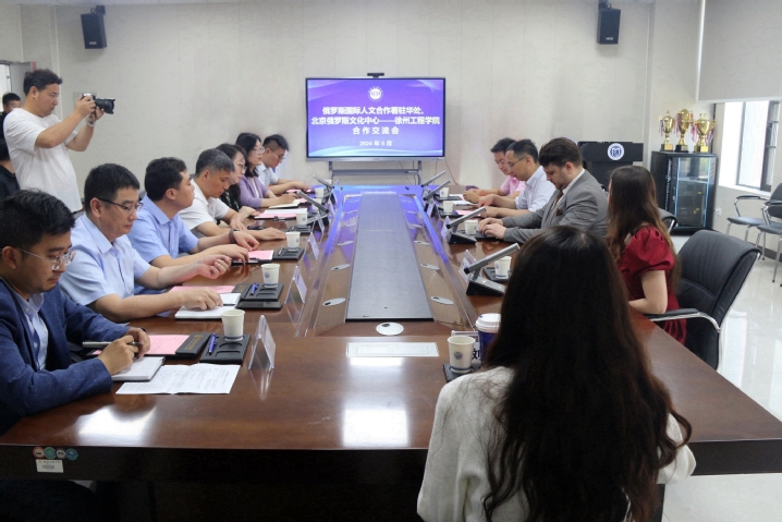 5月24日,俄罗斯国际人文合作署驻华代表处代表、北京俄罗斯文化中心执行主任古普托尔•亚历山大一行来访我校。副校长谭文轶、徐州市人民政府外事办公室副主任袁一、徐州市教育局高宣处处长胡辉、云龙区教育局副局长马红梅会见代表团一行。校国交处、圣彼得堡联合工程学院负责人及教师代表参加活动。