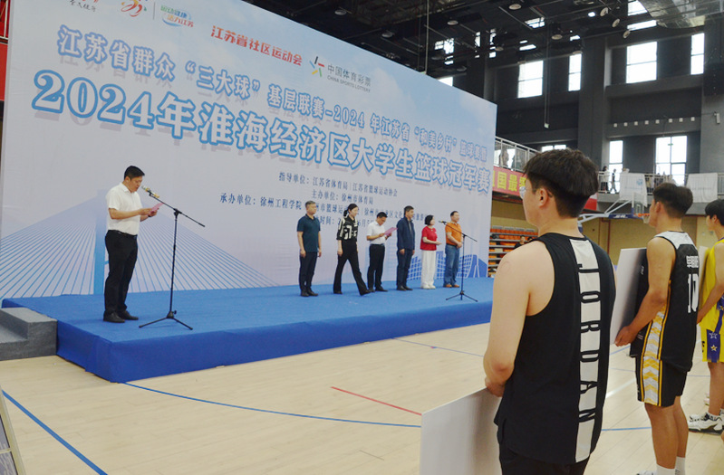 近日,由江苏省体育局,江苏省篮球运动协会指导,徐州市体育局主办,徐州工程学院、徐州市篮球运动协会、徐州市云龙区文化体育和旅游局承办的江苏省群众“三大球”基层联赛-2024 年江苏省“和美乡村”篮球赛暨2024年淮海经济区大学生篮球冠军赛在我校举办。我校曹杰副校长出席开幕式并致辞,徐州市体育局副局长吴南宁宣布比赛开幕。