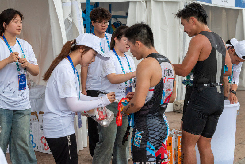 6月16日,2024年中国·徐州“淮海经济区”铁人三项赛在徐州云龙湖风景区火热进行。为助力铁人三项赛赛事顺利开展,校团委积极响应市委市政府号召,组织人文、物新、食品、体育等4个学院及校青协共46名师生投入到志愿服务工作中,全体志愿者在工作中认真负责,勇挑重担,保障了赛事的顺利进行,成功完成了全部志愿服务任务。
