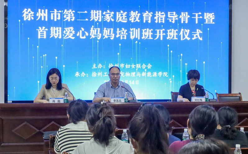 近日,由徐州市妇女联合会主办,我校物理与新能源学院承办的徐州市家庭教育指导骨干队伍和爱心妈妈专题培训在我校举办。徐州工程学院党委副书记李苏北,徐州市妇联主席刘红梅出席开班仪式,80余名基层干部参加培训。开班仪式由徐州市妇联副主席肖蕊主持。